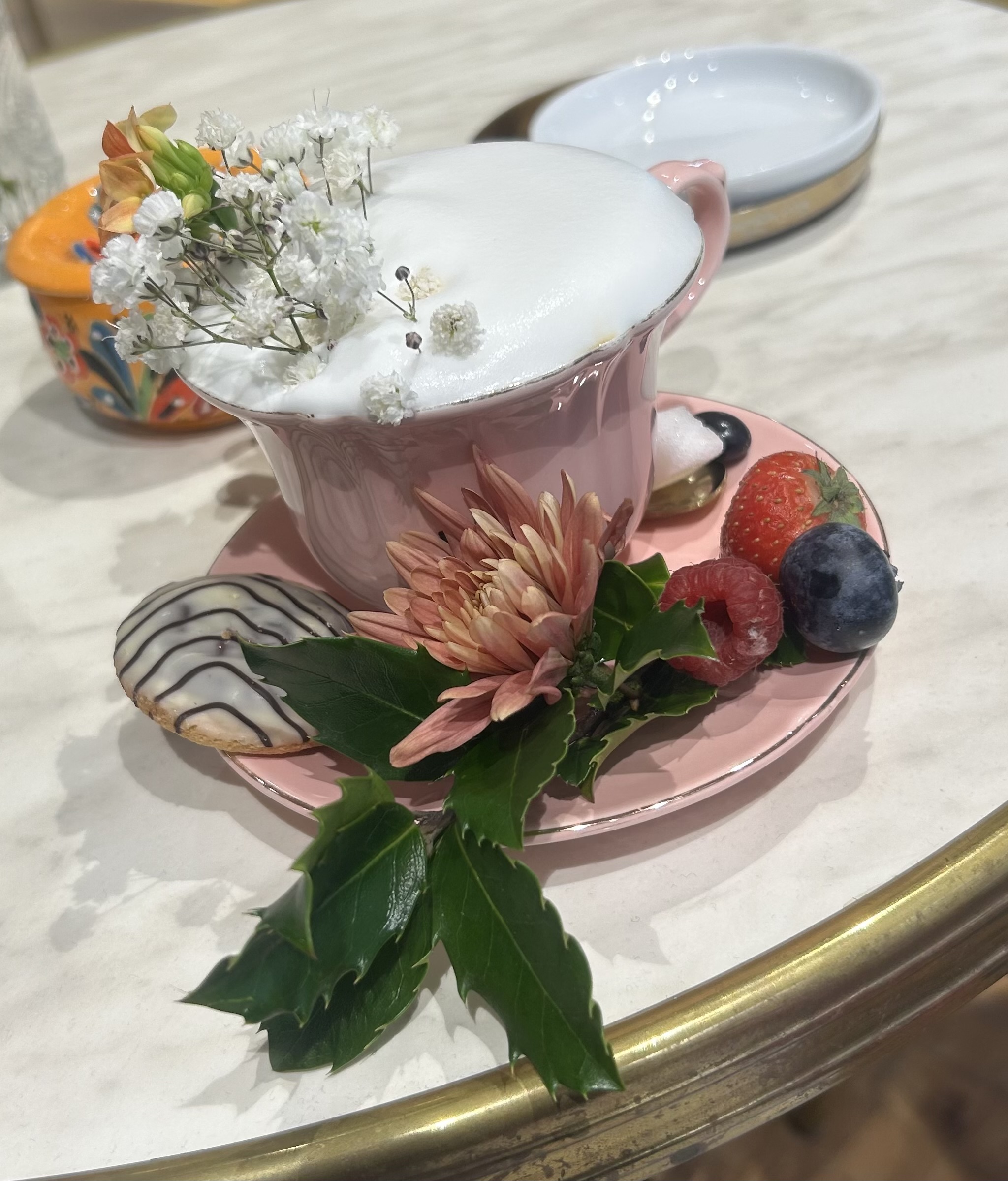Gaaanz anders kam das Töchterlein daher: sie war in einem Vintageladen, wo ein sehr feiner Herr schon auf sie geartet zu haben schien! Er hat Katharina erstmal den schönsten Kaffee gemacht, den ich jemals gesehen habe, um dann in wirklicher Seelenruhe Geschenke mit ihr auszusuchen und in epischer Breite stilvoll zu verpacken.